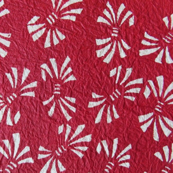 This is KATAZOME-CHIYOGAMI from Kyoto. This Washi is crumpled after it was dyed by hand using paper patterns. It’s so appealing because of the uneven surface feeling and the dynamic color.